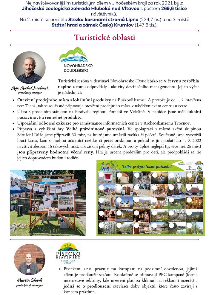 7.7. 2022 Shrnutí činnosti JCCR a turistických oblastí v jižních Čechách za měsíc červen. Newsletter ke stažení v PDF. Soubory ke stažení leták | pdf | 8.6 MB