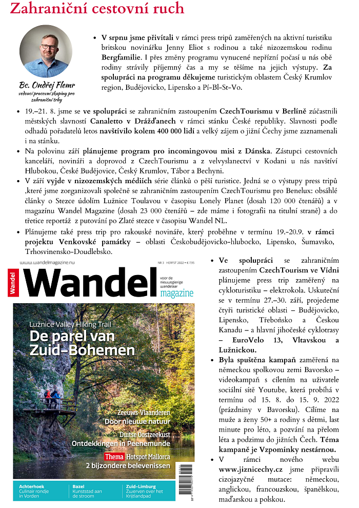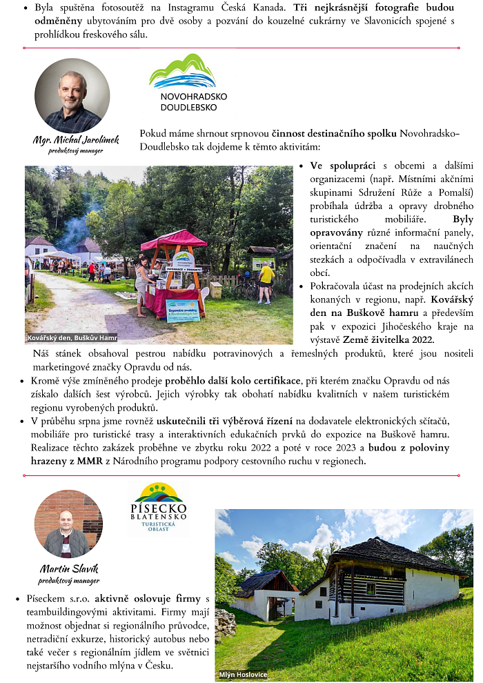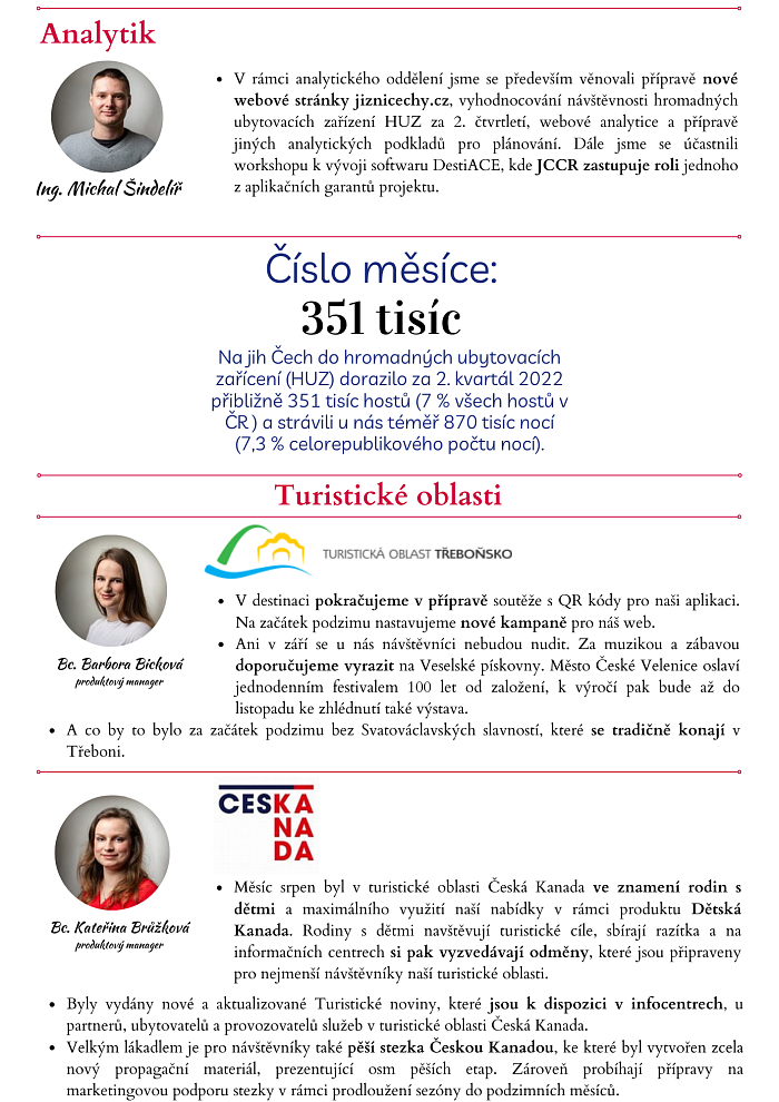 9.9. 2022 Shrnutí činnosti JCCR a turistických oblastí v jižních Čechách za měsíc srpen. Newsletter ke stažení v PDF. Soubory ke stažení leták | pdf | 8.6 MB