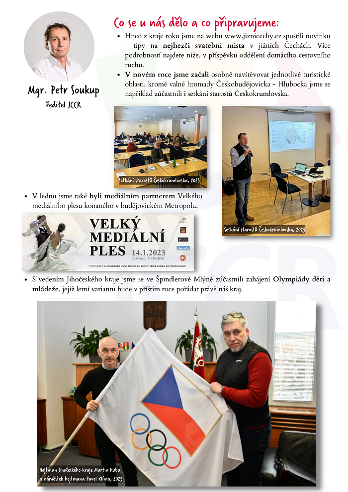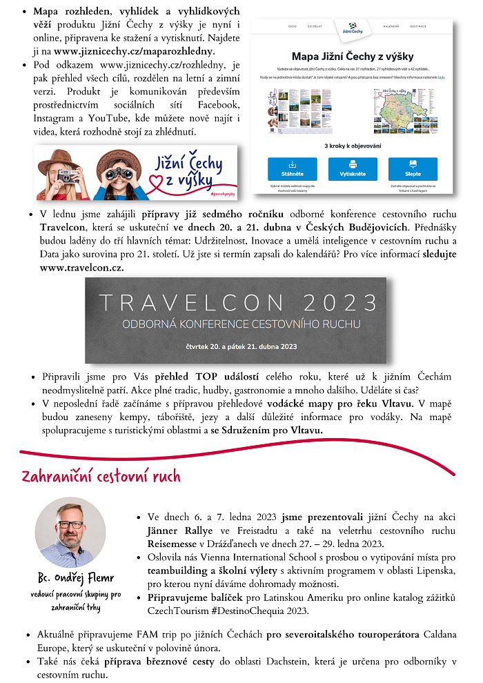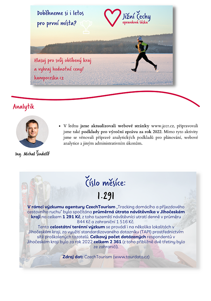 7.2. 2023 Shrnutí činnosti JCCR a turistických oblastí v jižních Čechách za měsíc leden 2023. Newsletter ke stažení v PDF. Soubory ke stažení leták | pdf | 8.6 MB