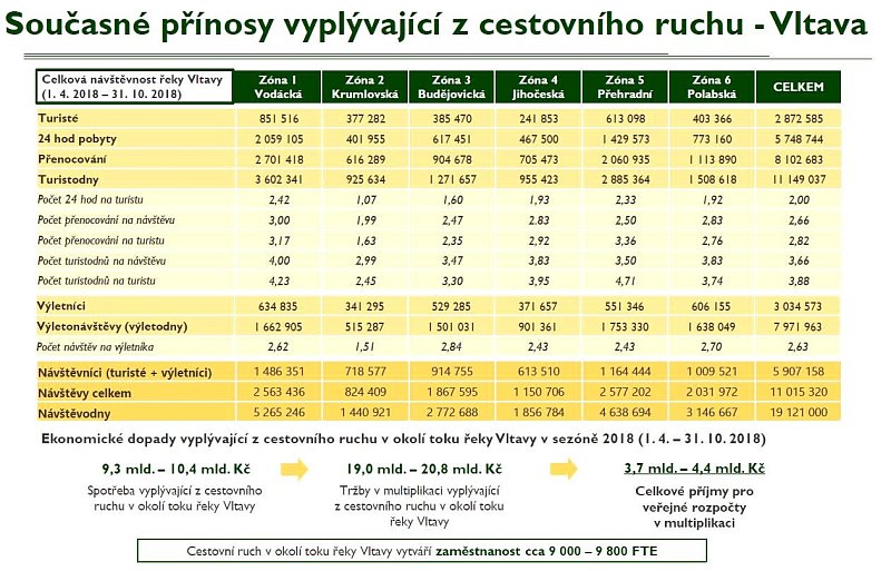 V současné době vytváří cestovní ruch v okolí toku Vltavy více než devět tisíc plnohodnotných pracovních míst. Po dokončení zmiňovaných investic by měl jejich počet vzrůst o další téměř tři tisíce.