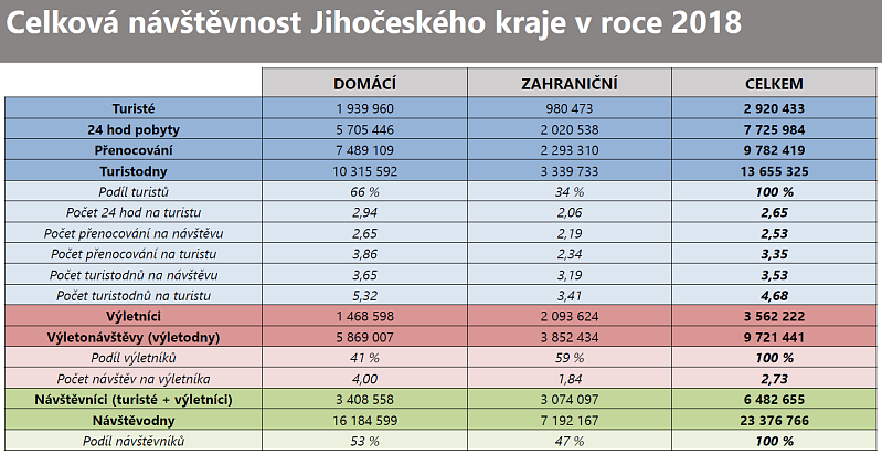 „V loňském roce zamířilo na jih Čech bezmála 6,5 miliónu návštěvníků (turistů / vícedenních návštěvníků + výletníků / jednodenních návštěvníků) z tuzemska i zahraničí a to v poměru 53:47 ze sta ve prospěch domácích. Více než 42,5 procenta z celkového počtu návštěvníků, téměř cirka 2,75 miliónu osob, přitom tvořili Pražáci, Středočeši, Němci a Rakušané,“ uvedl ředitel JCCR Jaromír Polášek.