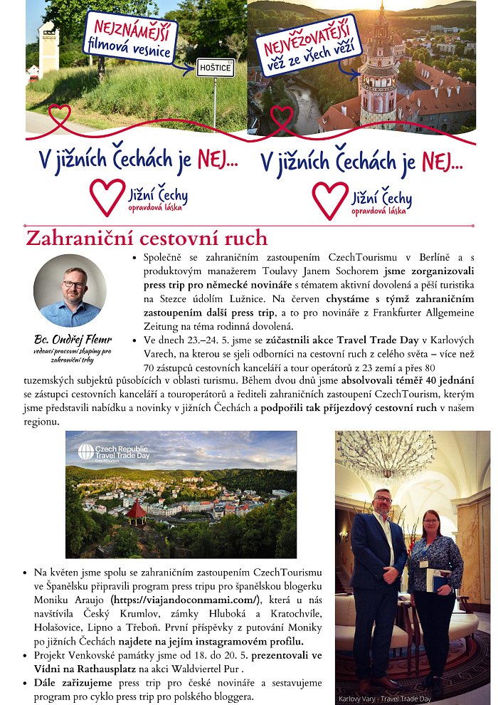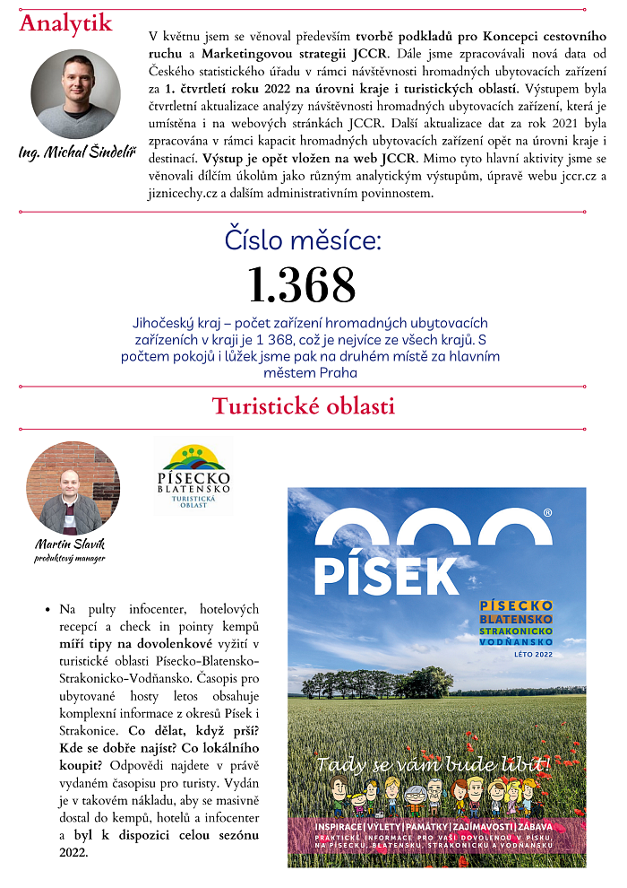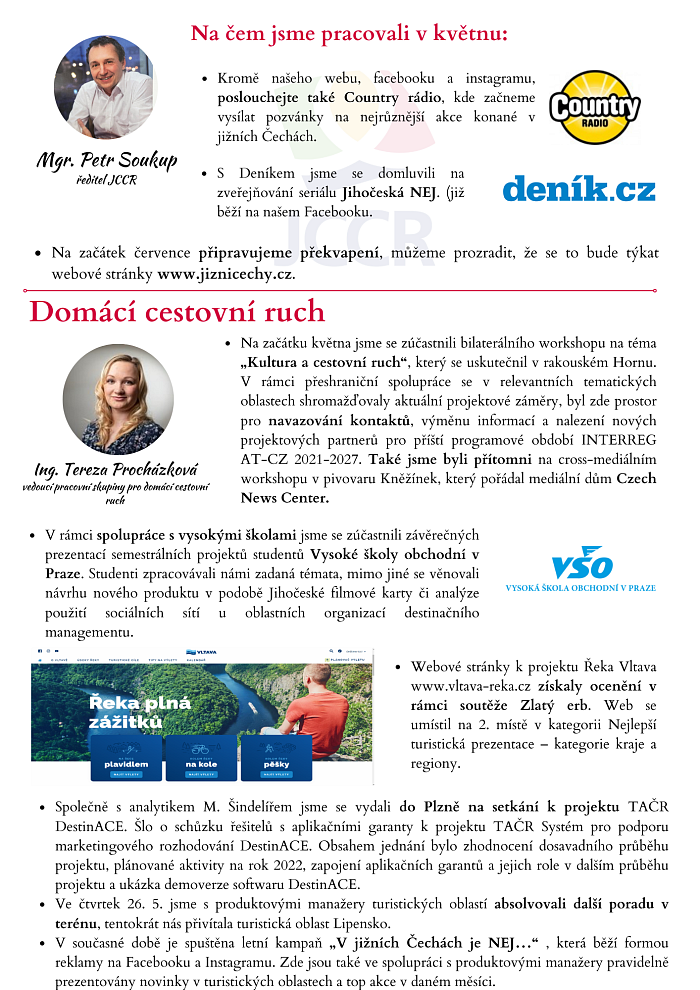 6.6. 2022 Shrnutí činnosti JCCR a turistických oblastí v jižních Čechách za měsíc květen. Newsletter ke stažení v PDF. Soubory ke stažení leták | pdf | 8.6 MB