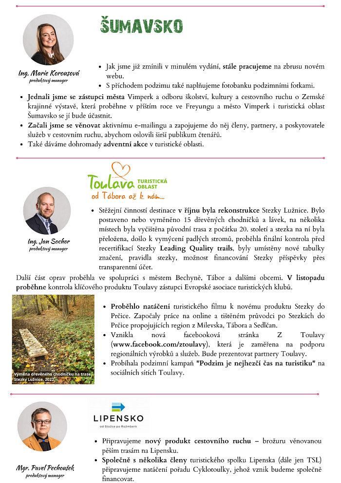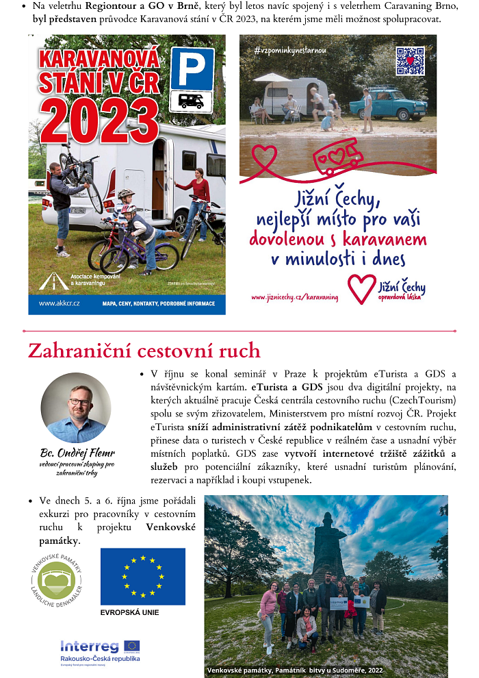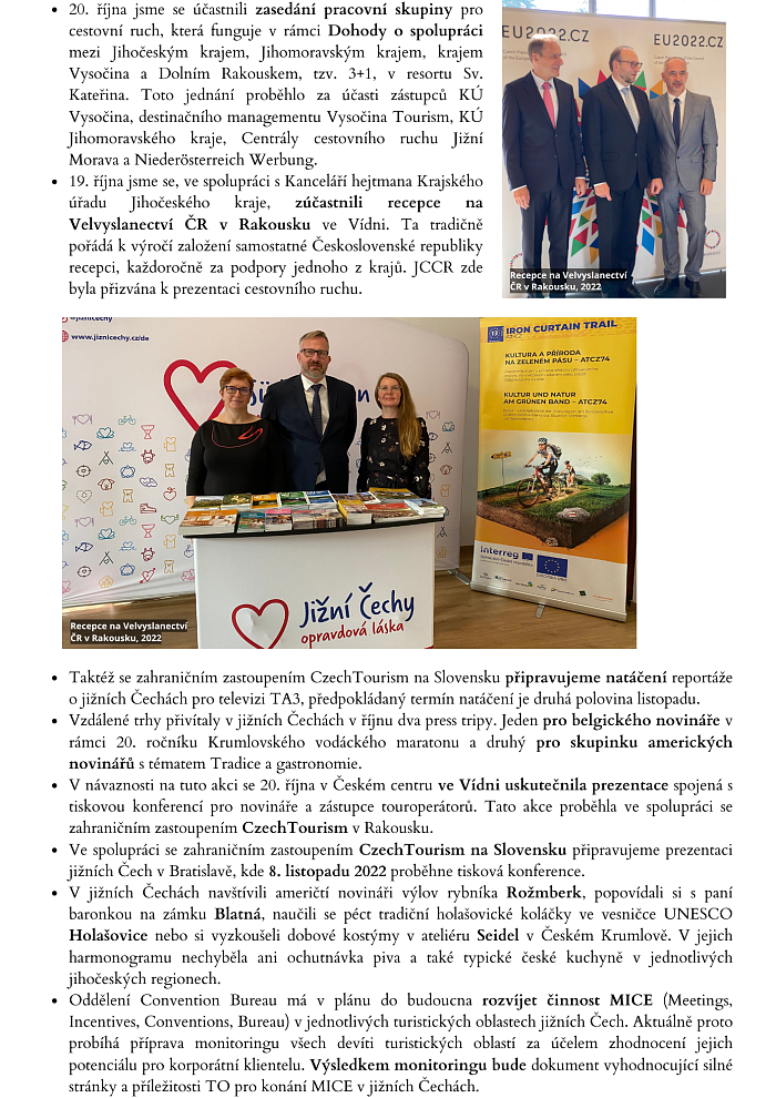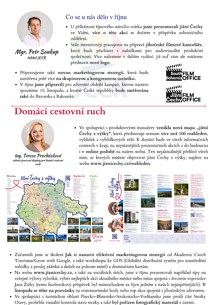 10.11. 2022 Shrnutí činnosti JCCR a turistických oblastí v jižních Čechách za měsíc říjen. Newsletter ke stažení v PDF. Soubory ke stažení leták | pdf | 8.6 MB